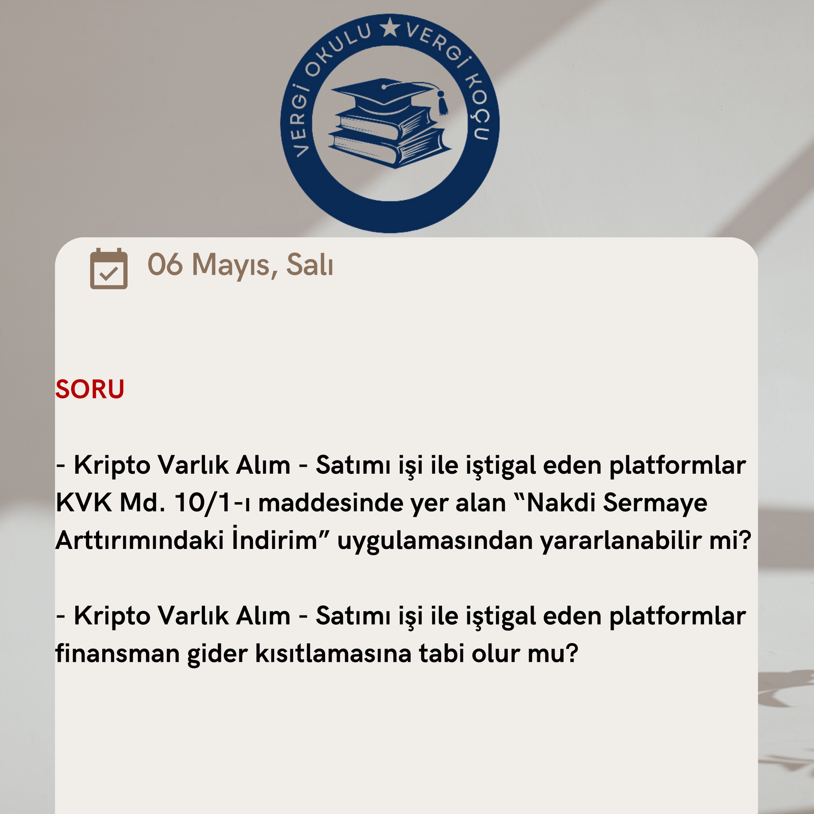 – Kripto Varlık Alım – Satımı işi ile iştigal eden platformlar KVK Md. 10/1-ı maddesinde yer alan “Nakdi Sermaye Arttırımındaki İndirim” uygulamasından yararlanabilir mi?