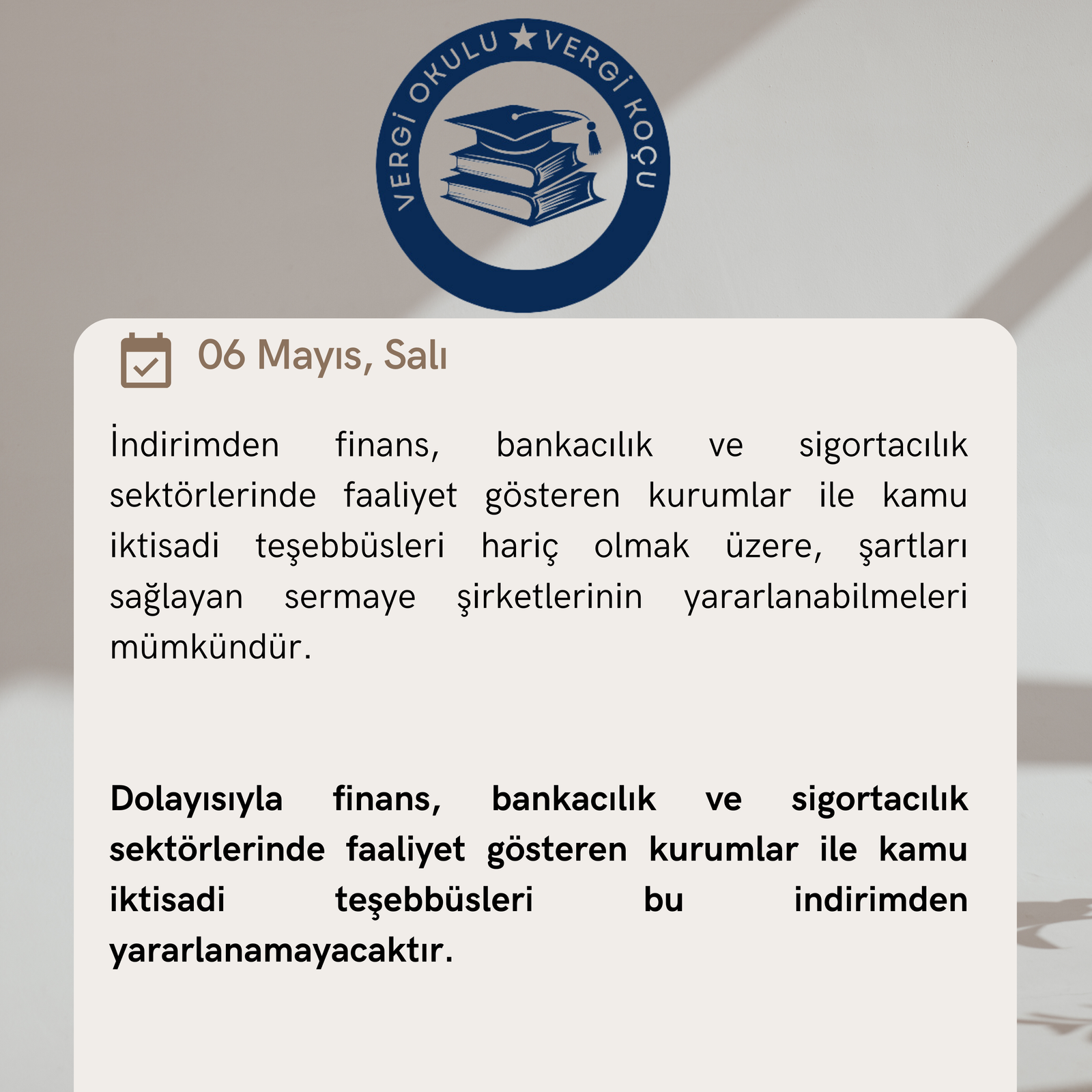 Dolayısıyla finans, bankacılık ve sigortacılık sektörlerinde faaliyet gösteren kurumlar ile kamu iktisadi teşebbüsleri bu indirimden yararlanamayacaktır.